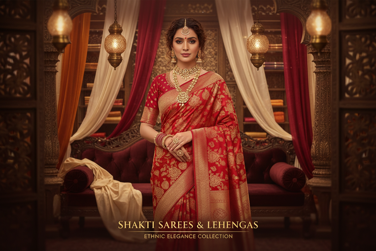 Banarasi Gota Work Katan Silk Saree, 6.3 M (With Blouse Piece)